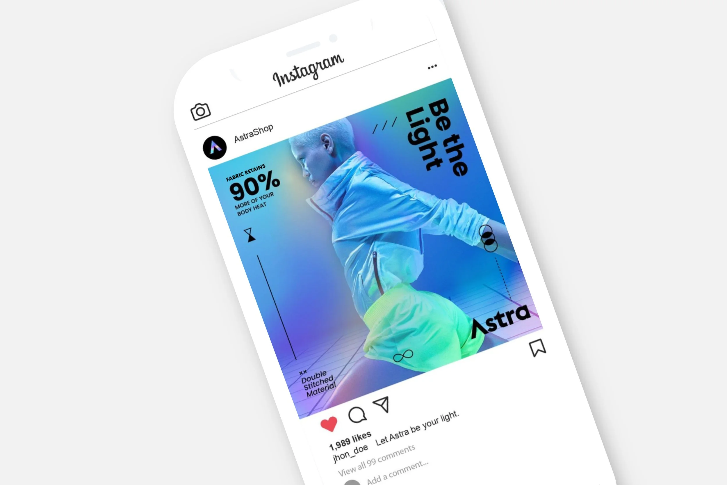 Astra’s hero jacket uses reflective “space blanket” material that retains 90% of body heat—folding neatly into a pouch. We crafted a high‑vibe brand that invites people to “wear your light,” balancing fashion with function and launching a DTC presence that feels energetic, celebratory, and practical. From packaging to web to launch strategy, the brand gives Astra a clear point of view in athleisure.