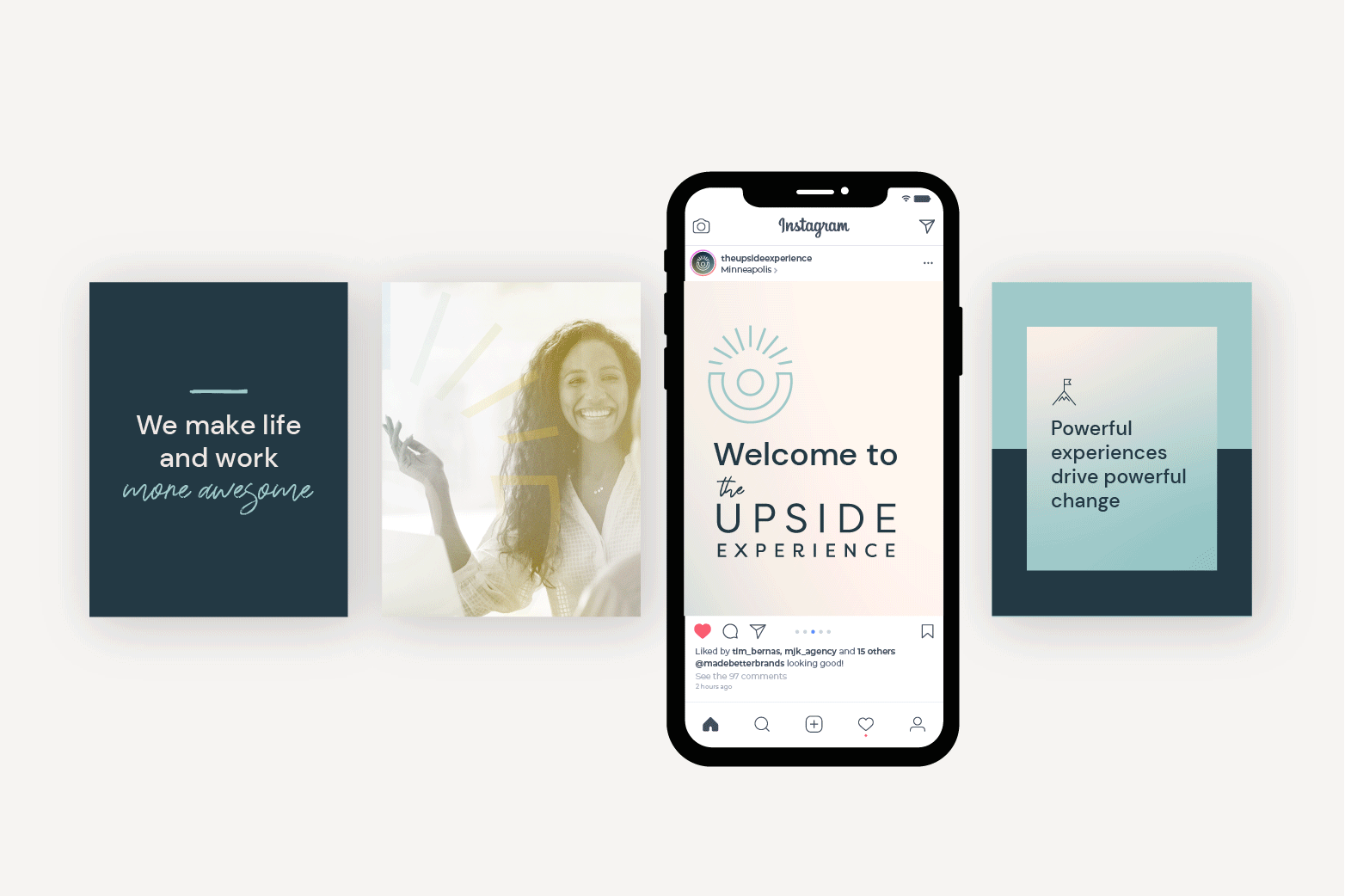 The Upside Experience is a team of three powerhouse coaches inspiring the awesome in people and organizations. Starting from zero, they needed a brand that clearly articulated their distinct approach in a crowded coaching landscape. We built a strategic foundation that highlights their strengths: tailored, hands-on experiences delivered with humanity, expertise, and a disarming, grounded presence. Paired with a visual identity centered on upward movement, simplicity, and warmth, the brand now clearly communicates who they are—and why their work sparks meaningful change for teams and organizations.